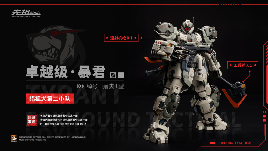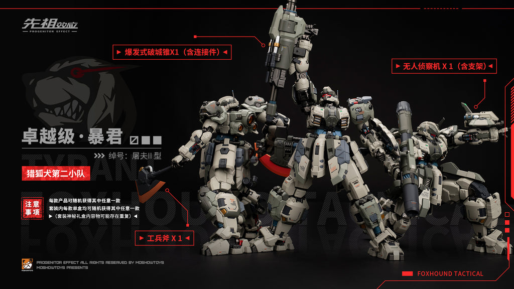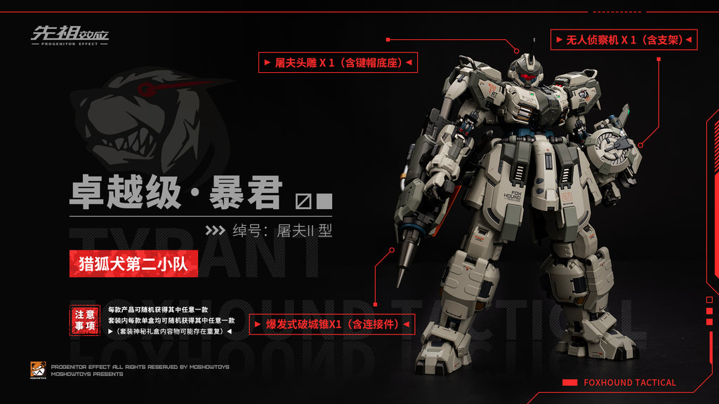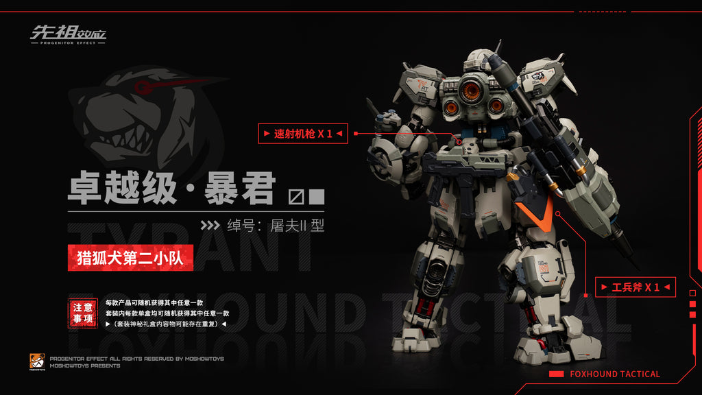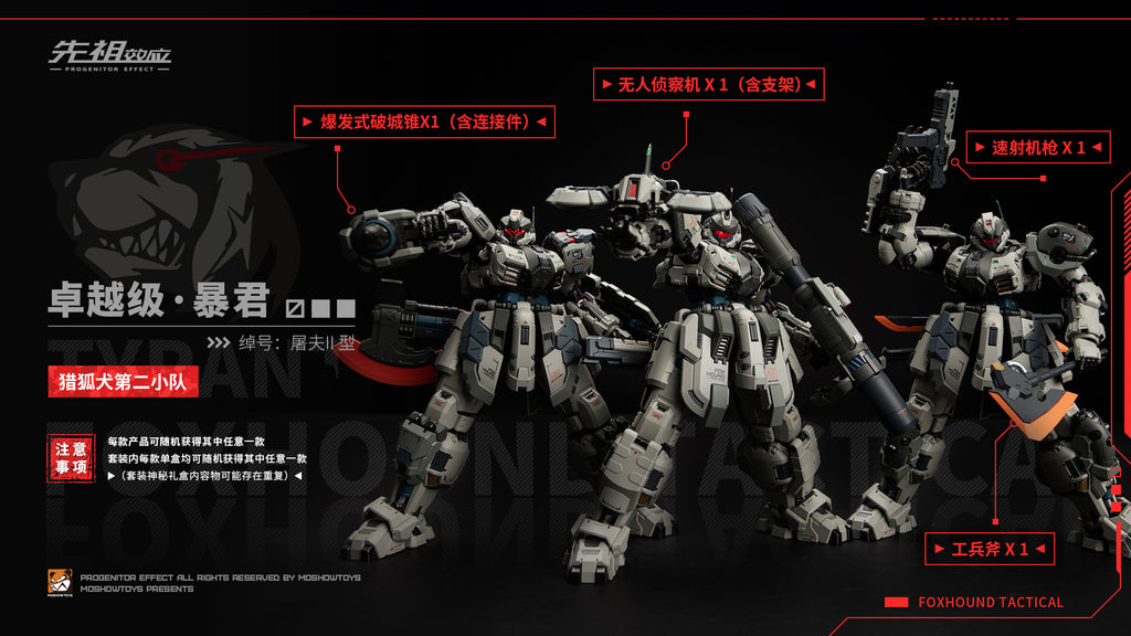 Introducing the newest addition to the Moshow gokin figure series - the Tyrant Fox Hound Tactical Set. This set features 3 highly poseable members, each equipped with their unique weapons and made of alloy material. With exquisite detail and standing at 20cm tall, this set is perfect for any collector or fan.