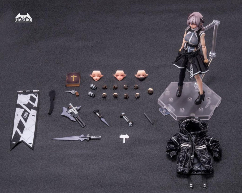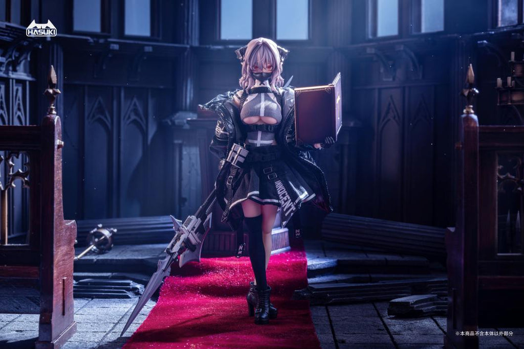Unleash the 1:12 Succubus Nun Action Figure's devilish charm with its full set stylish battle suit, sword, and revolver gun. Choose from two options in the deluxe version with an extra long spear and connecting part. Add even more variety with two sets of nun costumes, sold separately. Highly poseable joints and fabric costume complete this collectible from Hasuki's Pocket Art series!