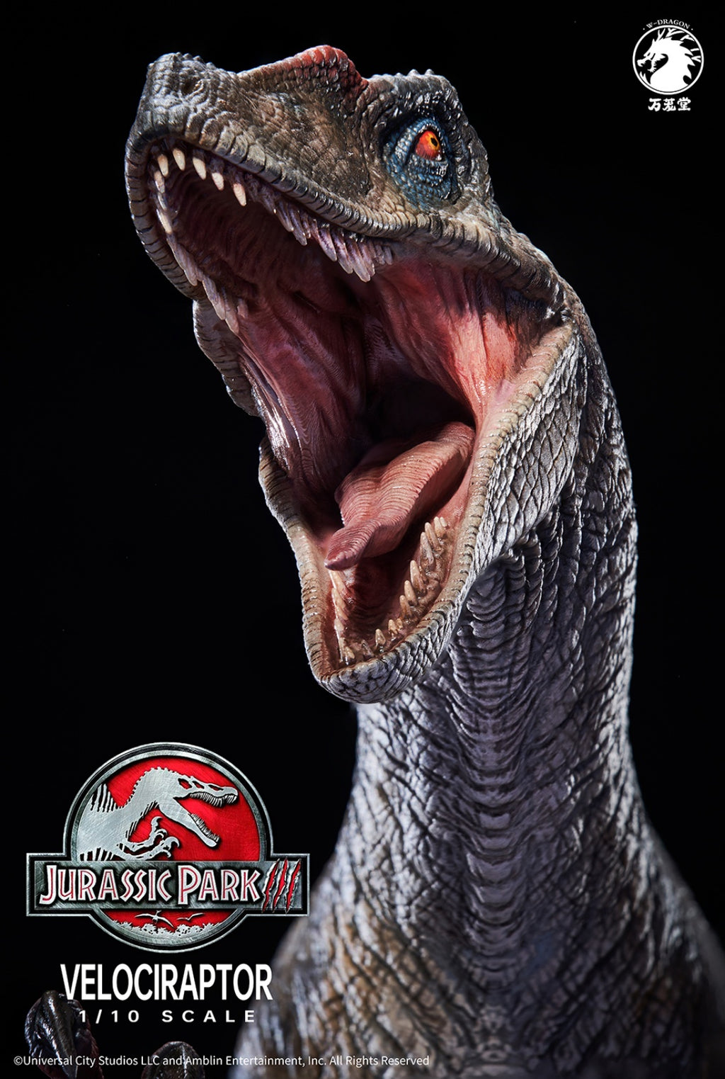 Unleash your inner paleontologist with this 1:10 Male Velociraptor Figure Statue! From the iconic Jurassic Park film, this statue features intricately crafted skin and textures for an authentic appearance. Painted by W-Dragon, this officially licensed product captures the speed and fierceness of the Velociraptor. Measures approximately 38cm long.