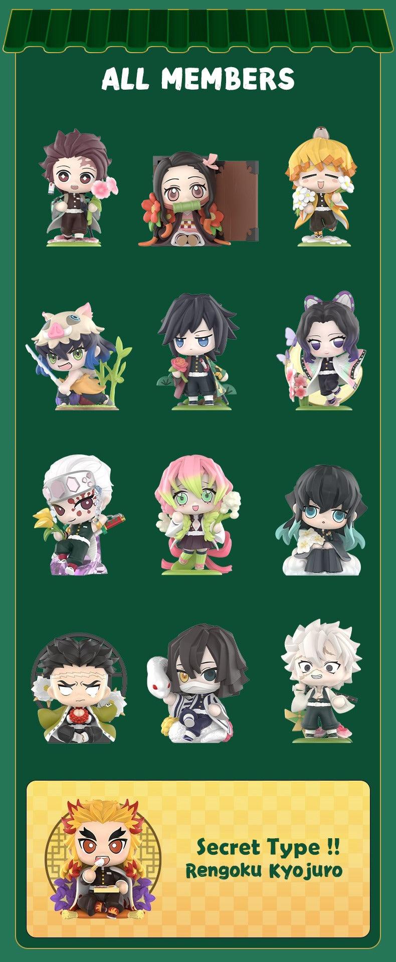 Welcome to the world of Demon Slayer! Get your hands on these cute collectible mini figures from PopMart. An adorable set of 12 regular figures plus a secret figure to complete your collection. Add a touch of adventure to your desktop today and have fun collecting them all.
