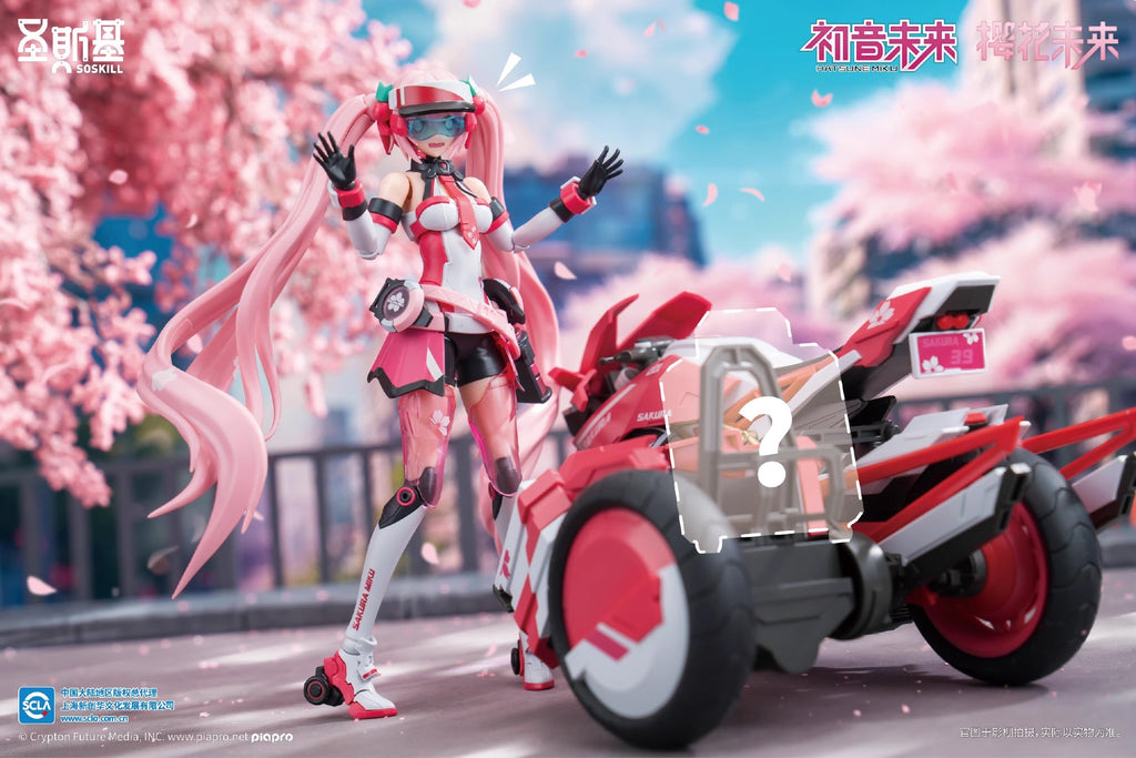 Ride into the fun and quirky world of Vocaloid with Sakura Miku & Motorcycle Assembly Model Kit! This highly detailed kit features the famous Miku dressed in pink color motorcycle suit, with a functional light-up motorcycle. With her included iconic accessories and poseable design, it's a must-have collector's piece for all fans! (Approx. 16cm tall when completed.)