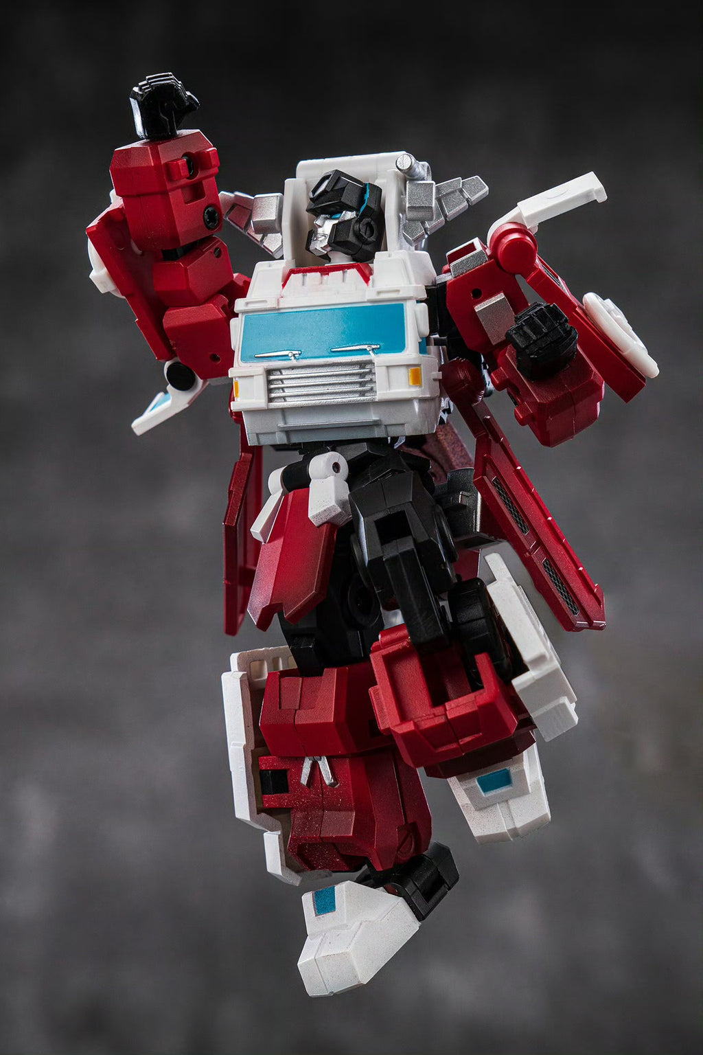 Meet EX-62H Hoshitaki from Iron Factory, a pocket-sized transforming toy that switches from a fire rescue engine to a robot in no time. Made with sturdy ABS, it’s perfect for fun and quick transformations wherever you go. Enjoy the playful challenge and bring this tiny hero to life!